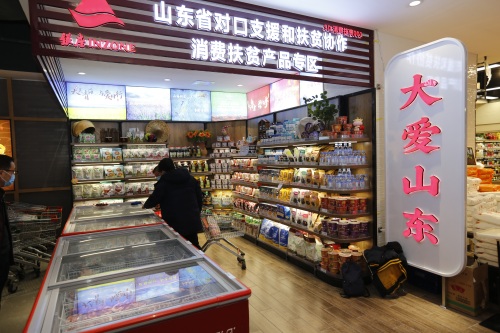 此外,鲁网·泰山财经记者还在超市入口左手边发现了一处扶贫专区,产品涵盖新疆、重庆、西藏、青海等地的新疆大枣、核桃、杏干、葡萄干、酸辣粉、火锅底料、重庆小面、自热火锅、牦牛肉、臧羊肉、藏香鸡、青稞制品、油菜花蜂蜜等特色扶贫产品200余种,据了解,这是超市特别推出的公益项目,助力贫困地区农特产品进驻展销,方便济南群众采购,促进消费扶贫规模化。