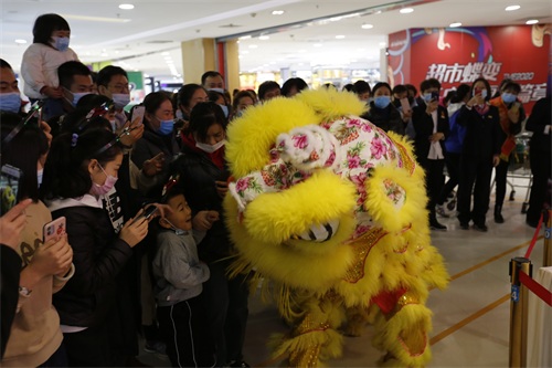 同时,为庆祝玉函银座十周年店庆,今天在超市入口处进行了精彩的舞狮表演,并准备了蛋糕分享给每一位银座的老朋友。