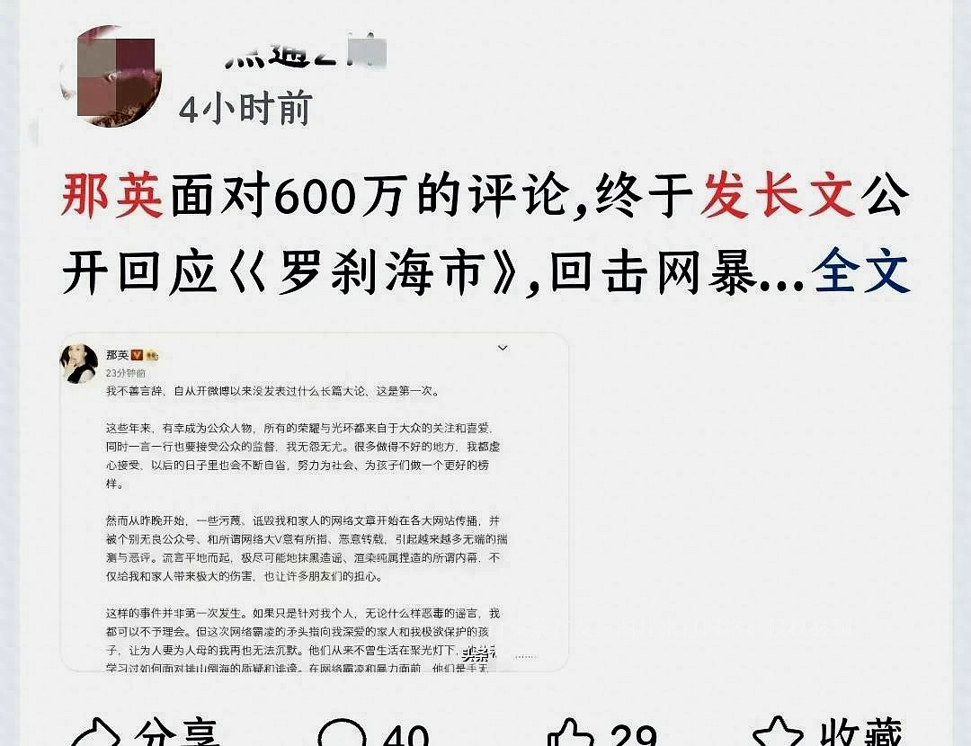 那英回应网络暴力的微博被疯狂转发,再次印证了网络的混乱