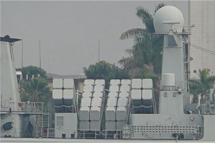 而在大家期盼已久的垂发系统上,“深圳舰”也没有辜负众望,在原先安装“海红旗-7”的位置上,安装了32联装的垂发系统。但由于舰体空间限制,没能安装052D同款的大号“海红旗-9”导弹垂发系统,而是选用了与054A同款较小的“海红旗-16”导弹垂发系统。但即便这样,“海红旗-16”导弹的垂发系统依旧突出甲板半人多高,可见垂发系统不是任何一艘军舰都可以“任性”安装的。而在安装了“海红旗-16”导弹垂发系统后,原先只具备近程防空能力的“深圳舰”,现在也有了一定的区域防空能力,可以为己方小范围内的友舰提供警戒。