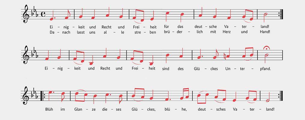 国歌:德国国歌采用Heinrich Hoffmann von Fallersleben (海因利希·霍夫曼·冯·法勒斯雷本)创作的 《德意志之歌》(1841年)的第三段,旋律取自Joseph Haydn(约瑟夫·海顿)创作于1796/97年的乐曲。