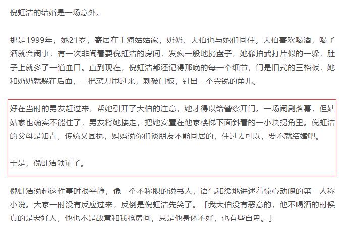 于是,倪虹洁与年长7岁的前夫结婚,两人的婚姻生活存续了十多年。