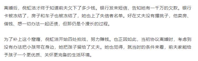 倪虹洁离婚后才发现,当年因为替前夫签约贷款,自家背上了千万的债款。