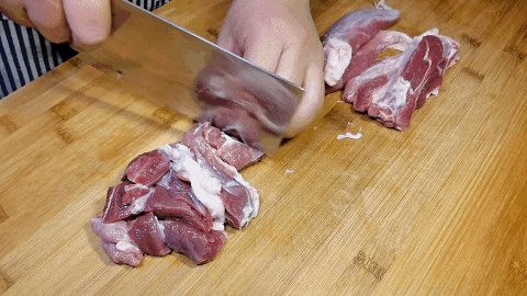 1.买回来的羊肉清洗干净切成块,后续烹饪时羊肉会缩小,可以切得稍大一些。