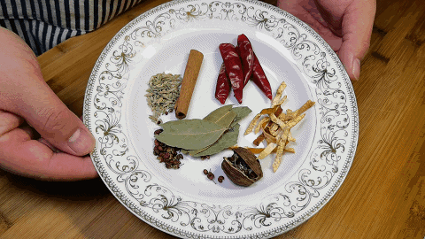 辅料:大蒜、大葱、生姜、桂皮、小茴香、花椒、草果、香叶、陈皮、红辣椒