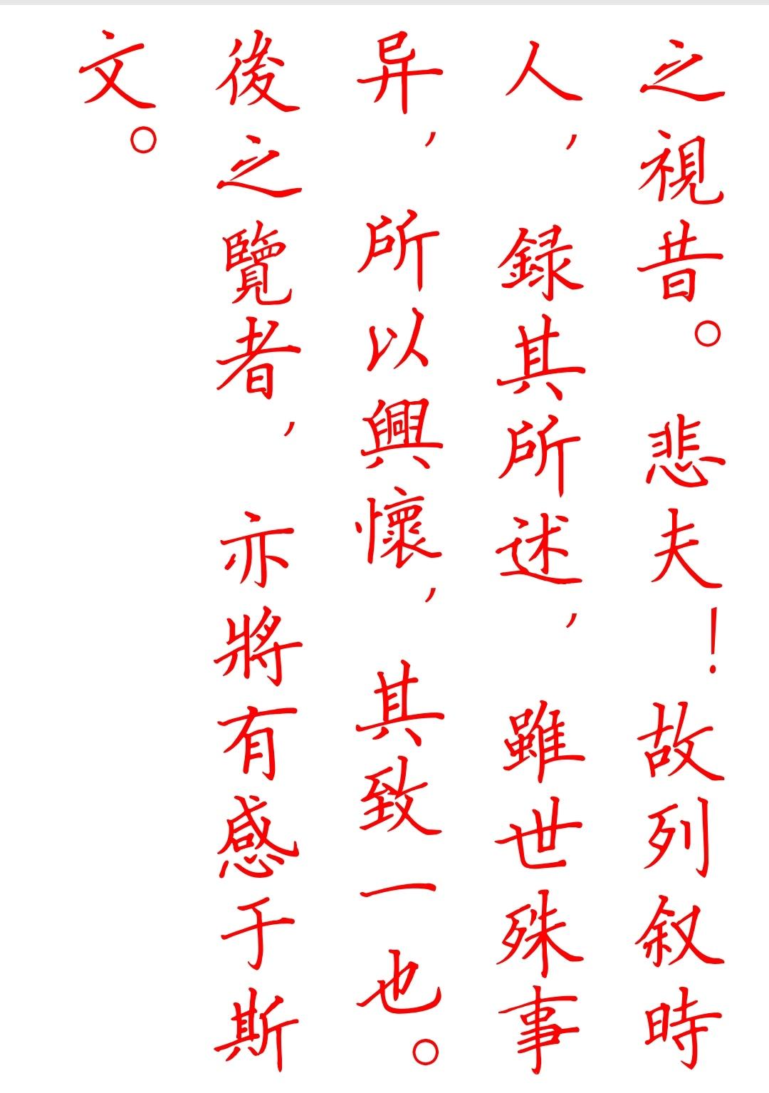硬笔楷书《兰亭序》和释文