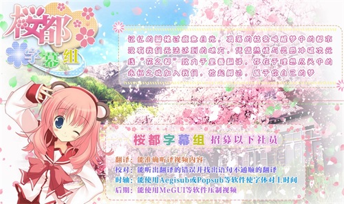 相信喜欢观看日漫的朋友不会对“桜都字幕组”这个名字陌生。上图这张招募的海报也应该很眼熟才是。