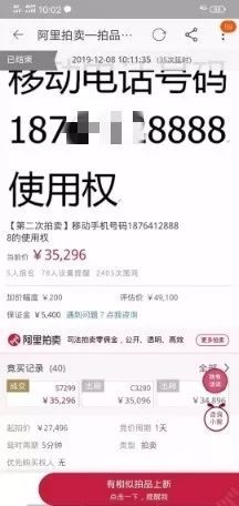 成功拍卖了两被执行人名下的手机号,