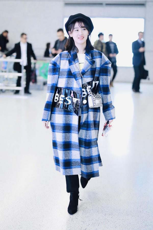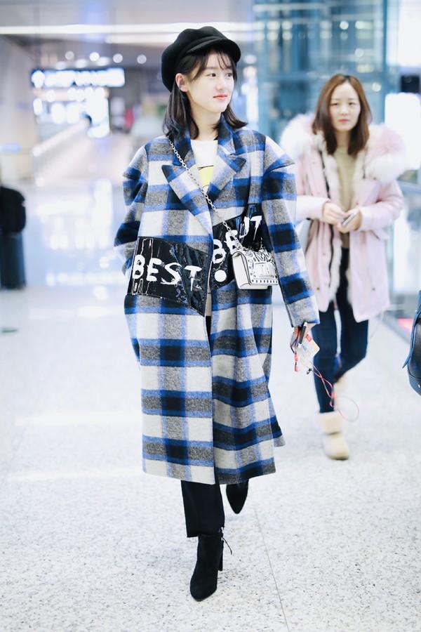 图片延伸阅读:华语明星街拍华语明星着装袁冰妍大衣格纹报童帽