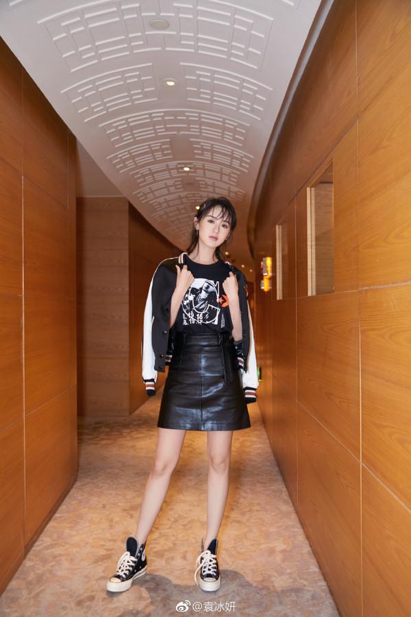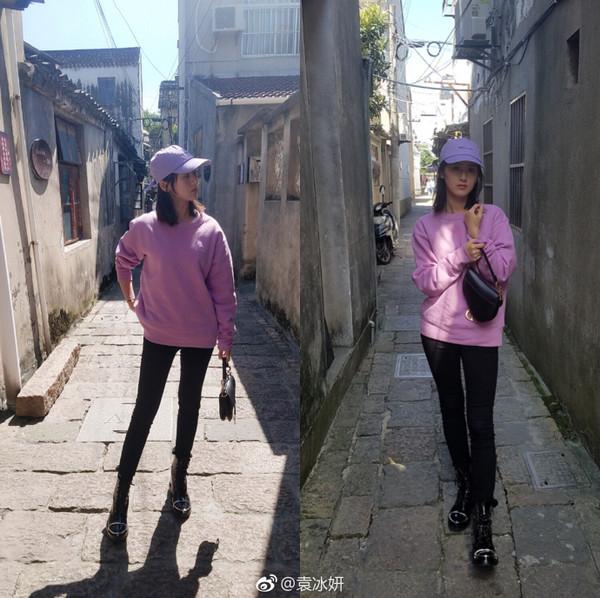 但换上帅气俏皮的休闲装,袁冰妍也可以分分钟化身街头酷Girl,可塑性很强。