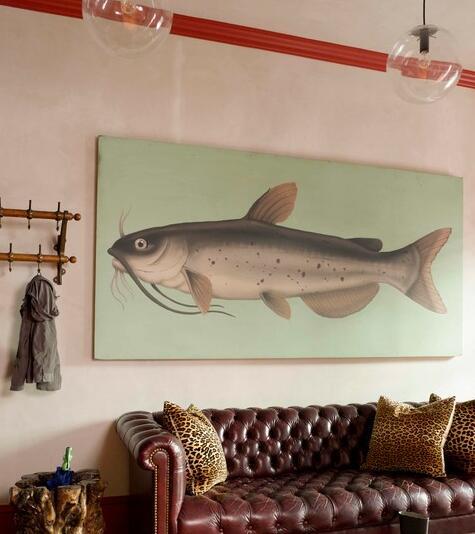 这个沙发背景墙很有意思,业主在沙发的上面挂了一副大鱼的挂画,大鱼挂画是用木头作品的大概有2米左右,估计业主是挺喜欢小动物的,就连沙发背景墙也挂了那么大的木质大鱼挂画