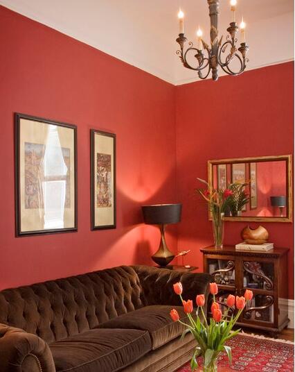 这个沙发墙整体色彩比较鲜艳,竟然采用了红色作为主色调,沙发背景墙挂了2副挂画,这个也是很多国内的业主喜欢的设计,简单一些挂一些挂画即可