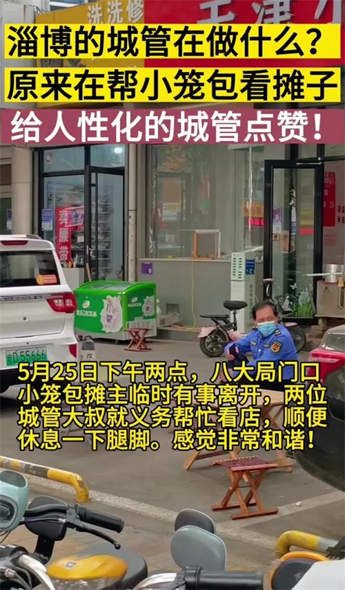 我们可以看看淄博城管,摊主临时有事离开,城管义务帮忙看摊位,这样的画面多和谐,这样的城市才是真正意义上的文明城市。
