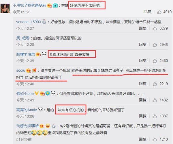 而且BY2还真的是感觉迷上了整容,隔一段时间换一张脸的感觉,看现在的照片和以前的对比,完全都不像是同样的双胞胎,原先清纯有辨识度,而现在扔在网红堆里估计都难找出来了。
