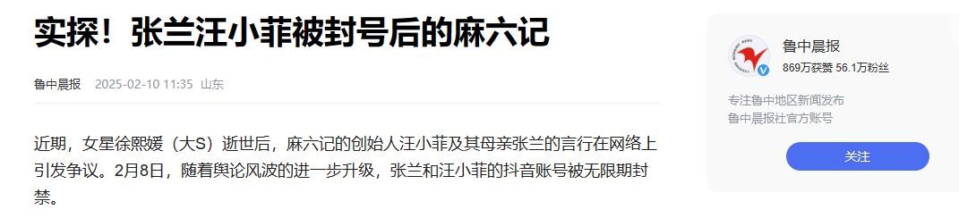 事情水落石出后,造谣者也受到了惩罚,而张兰和汪小菲的三个账号也被无限期封禁。