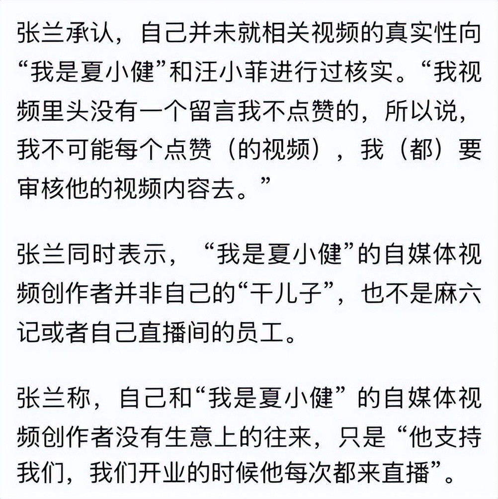 也不可能对每一个点赞的视频进行核查,再者她称“我是夏小健”并不是她的“干儿子”也不是麻六记的员工。