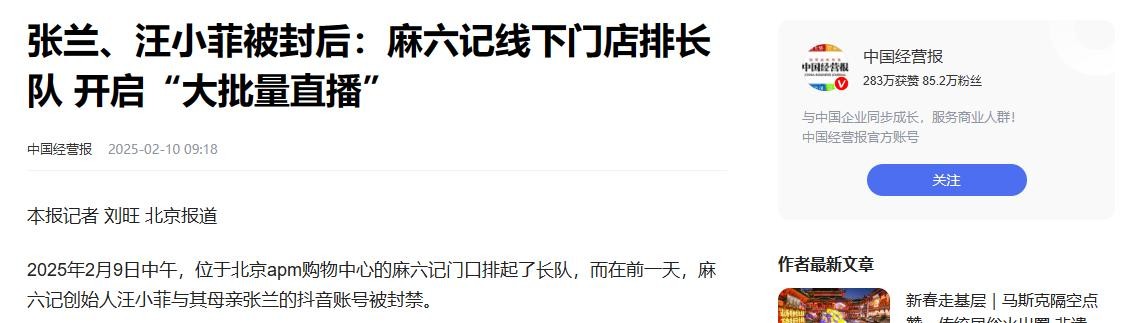 张兰和汪小菲的账号被封禁后,各地的麻六记也开始了直播卖货,在网上刷屏了。