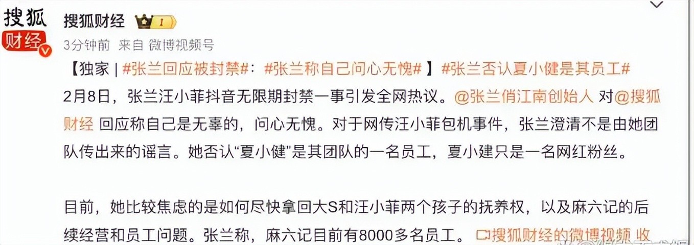 称自己什么都没干,什么都没说,为什么要封禁我,甚至他还在朋友圈发文与张兰断绝关系。