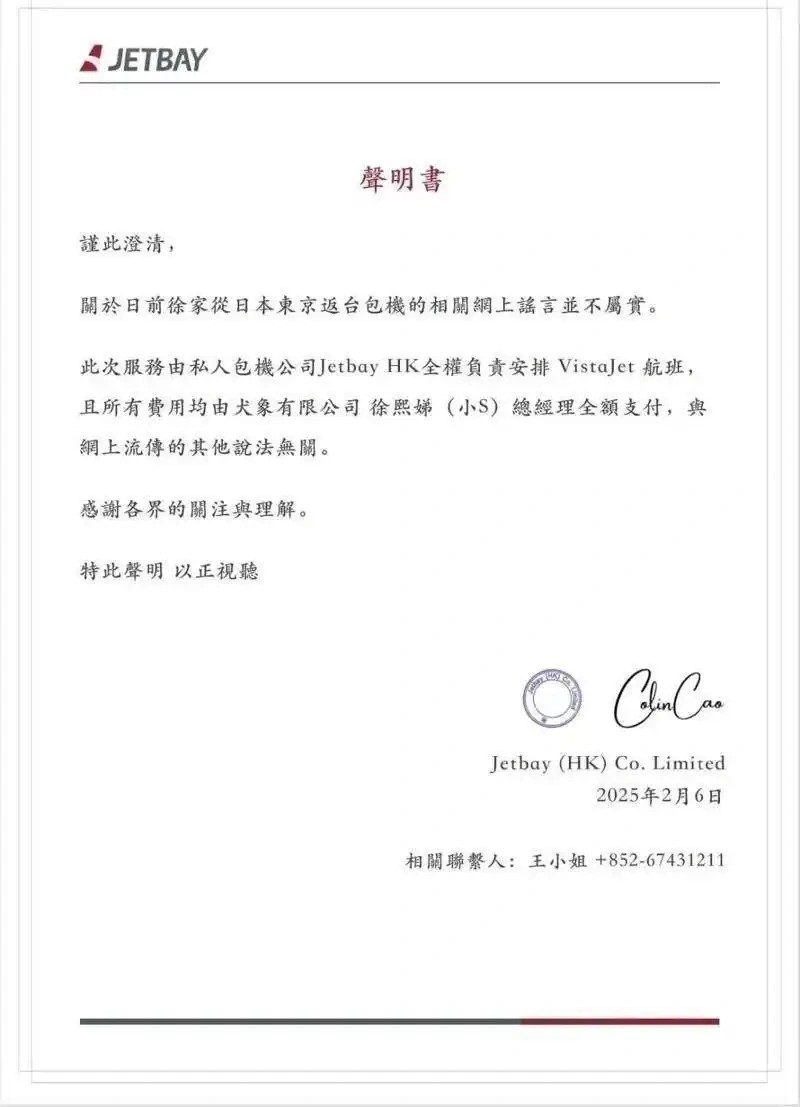 但紧接着小S就辟谣了,表示包机的钱是徐家出的,和汪小菲没有任何关系。