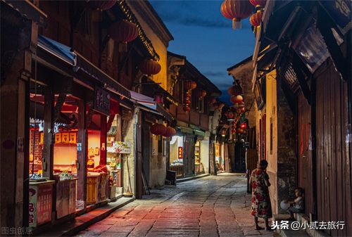 石灰青的石板路、胭脂石,雕花木窗,古风幡旗