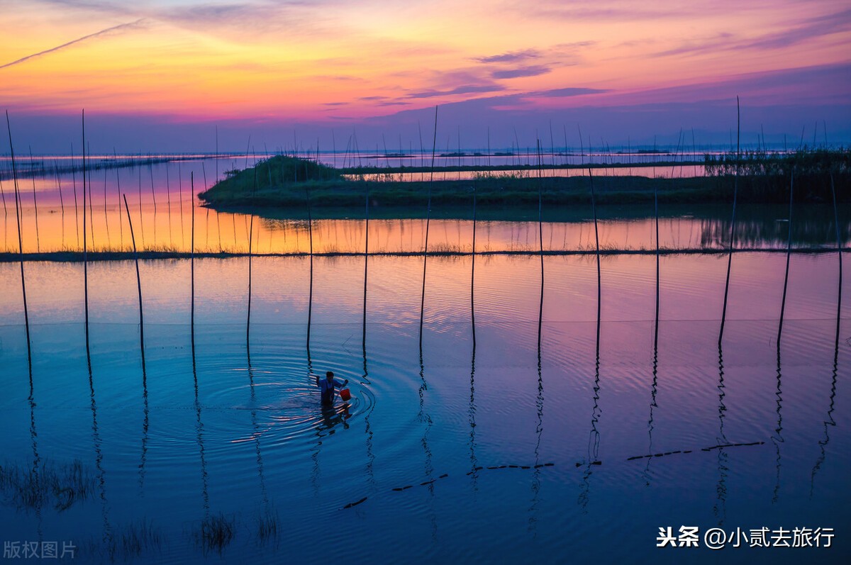 素有「日出斗金,日落斗银」的石臼湖,最适合清晨和傍晚来打卡。