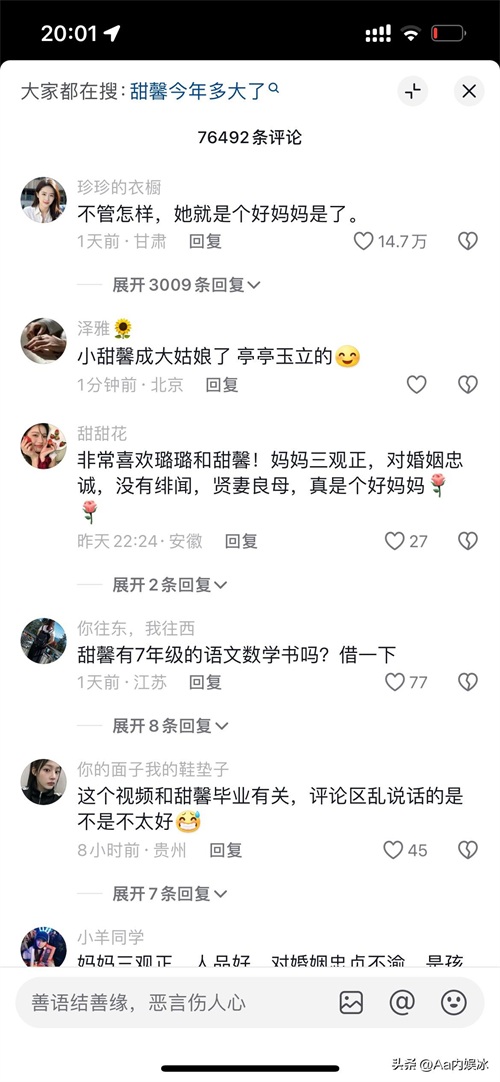 李小璐和甜馨的故事在社交平台上引起了广泛关注,许多网友纷纷留言表达对她们的祝福和支持。网友们对李小璐作为母亲的表现给予了高度评价,对甜馨的成长也表示了肯定和期待。