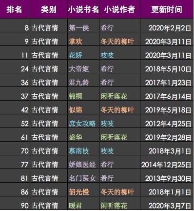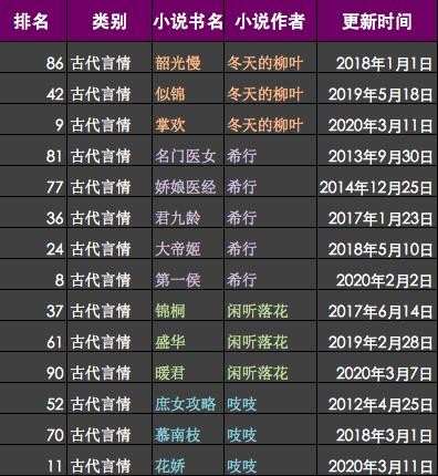 希行、吱吱、闲听落花、冬天的柳叶,古言作家TOP4谁是你心中王者