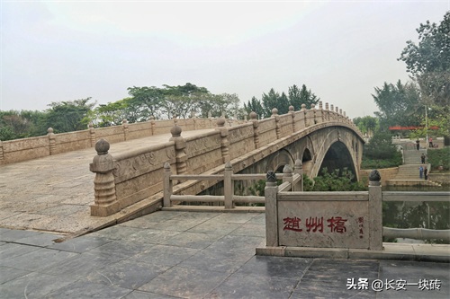 安济桥横跨洨(xiao淆)河上,建于隋代大业年间(公元605-617年),距今一千三百多年,经过多少次洪水、地震等自然灾害的考验,至今仍巍然屹立,为世界上所少见。安济桥是一位工匠李春设计的。桥长五十多米,宽九米多,隋安济桥巩,即由一十八道很窄的独立的狭拱(每道拱券用四十三块大石块组成)平行拼成一个大拱。拱的跨度三十七米多,拱矢(就是两拱脚连结线到拱顶的高度)只有七米多,矢跨比是五分之一,这在世界桥梁中是极其少见的。它的拱形不是一般的半圆形,而是象一张弓,构成所谓“坦拱”,便于行人车马上下。最巧妙的是,在大拱券的两肩,各有两个小拱,首创了世界上、“敞肩拱”的新式桥型。这种结构方法,比欧洲要早一千二百多年。“敞肩拱”能减轻桥重,节省石料,便于泄洪水,增加桥的稳定性,桥身显得玲珑美观。古人形容安济桥是“新月出云”、“高虹横水”,称赞它“奇巧甲天下”。