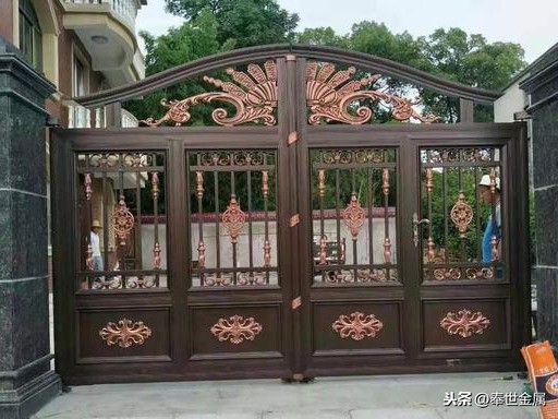 铜材质作为别墅庭院门比较新颖一些,现在铜门分为真铜、仿铜、复合铜这样几种类型,大家都知道铜门价格贵,其精致主要表现在表面的铜皮上面,但是作为庭院门采用铜材质固然好,这样的价格不是一般业主能够接受的,大部分选择以仿铜门居多,也就是看起来像但不是真铜,这种门有点华而不实,就是使用时间久了问题比较多。使用过铜门的业主可能在换门时候就不会选择了。