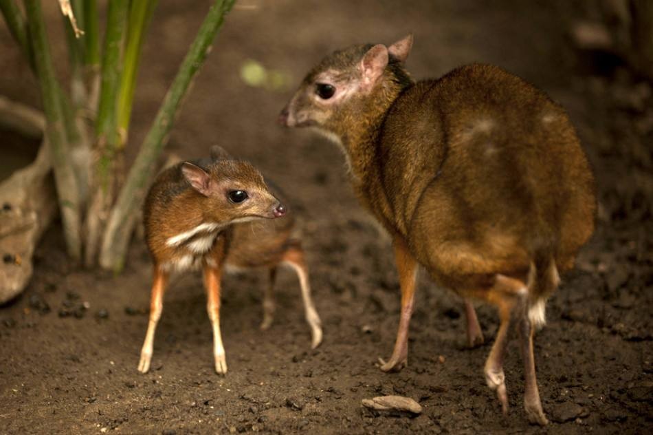 2014年4月,在西班牙的佩恩顿动物园内一只人工繁殖的鼷鹿出生。