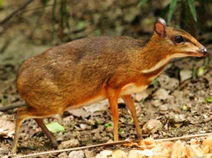 鼷鹿是介于骆驼科与鹿科之间一个珍稀物种,是地球上最小的偶蹄动物,其外形就如马鹿的袖珍版,体形只有兔子般大小,由于其保持了鹿科动物的很多原始特性,因而有着极高的科研价值。