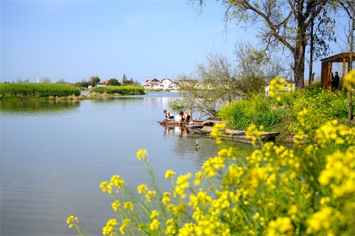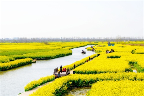当然,如今为方便游客游览参观,在油菜花田中修筑了木栈道,河道上也有船只可乘坐游览。