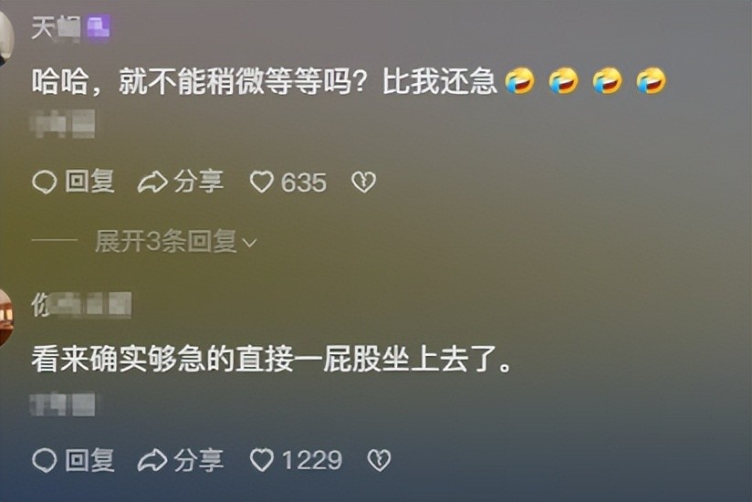 网友D:看来确实够急的直接一屁股坐上去了。