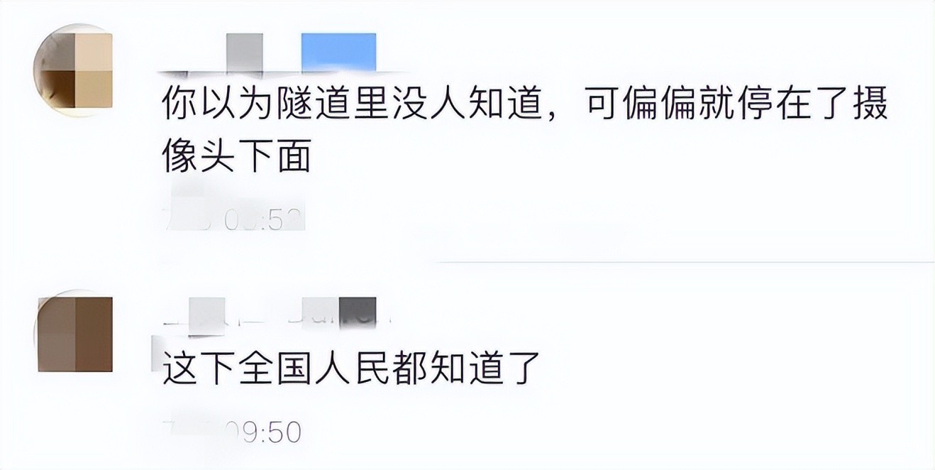 网友C:你以为隧道里没人知道,可偏偏就停在了摄像头下面