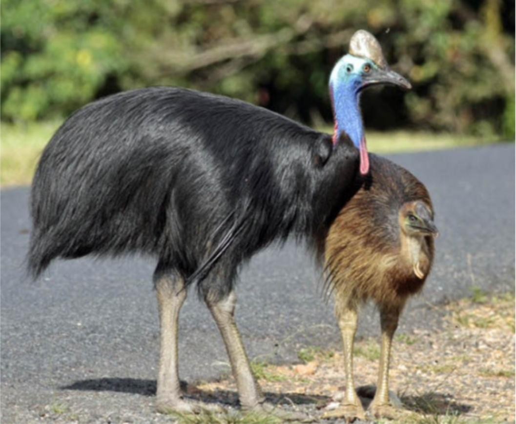 此外这种鸟也有很高的智慧,最擅长的就是装死,如果听到了枪声,不管有没有中枪,都会立即倒下装死,然后找到合适的机会逃跑。最有意思的是,鹤鸵是母权主义,雌鸟会游走在各个雄鸟的领地,挑选配偶,并且雌鸟产下鸟蛋后,雌性鹤鸵不会照顾它们的蛋或幼鸵,而是交给雄性鹤鸵,雄鸟会孵化鸟蛋两个月,同时再照顾幼鸵九个月,直到幼鸵可以独立生存,期间雄鸟会教导小鹤鸵如何寻找食物、如何游泳。