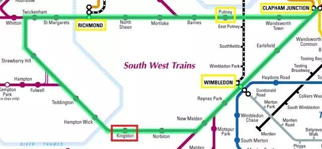 金斯顿虽然在六区但是交通很便利,这里有South West Train路线的金斯顿火车站(Kingston Railway Station)直达Clapham Junction和帕特尼Putney仅需20分钟,到Vauxhall和滑铁卢 Waterloo也只需30分钟。