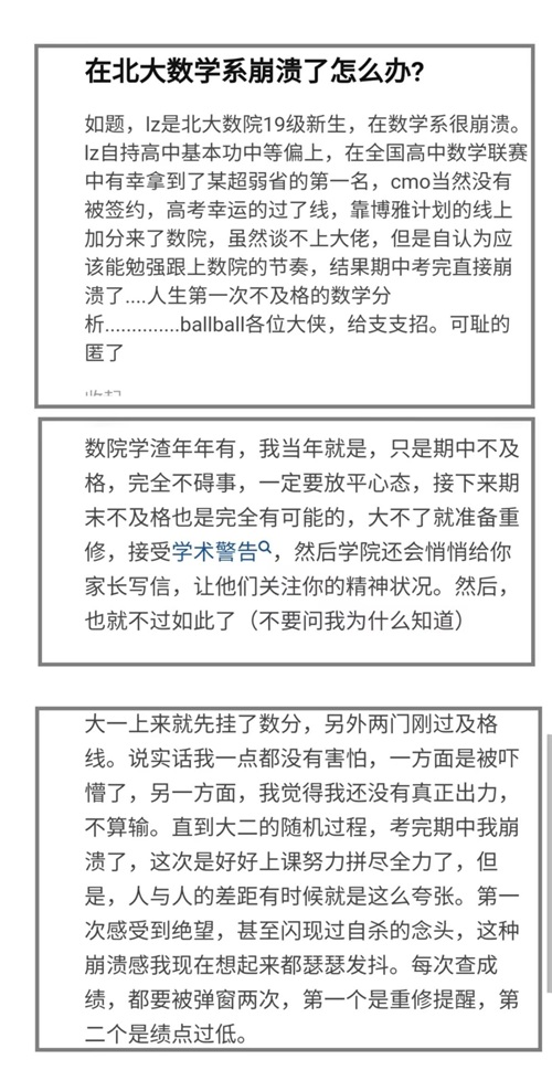 高手云集,课业自然也不会轻松。在网络平台,经常能看到北大数院的学生抱怨:课业太难、经常挂科、心态几乎崩溃。