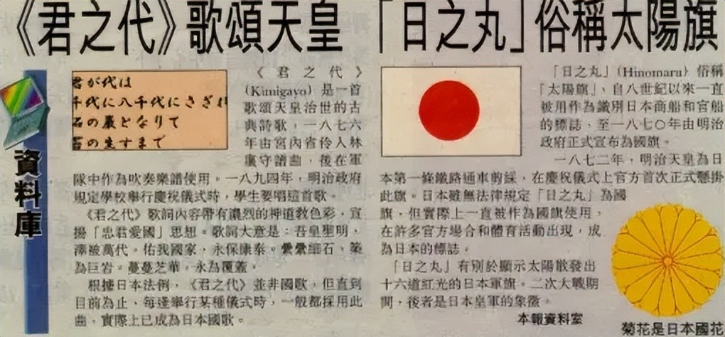 从日本国歌《君之代》的诞生,就是由一个到死都满肚子军国主义思想的日本军人操刀歌词,再到最终定型,由日本统治者天皇钦定,再到时至今日,日本各大电视台的全天候循环播放。