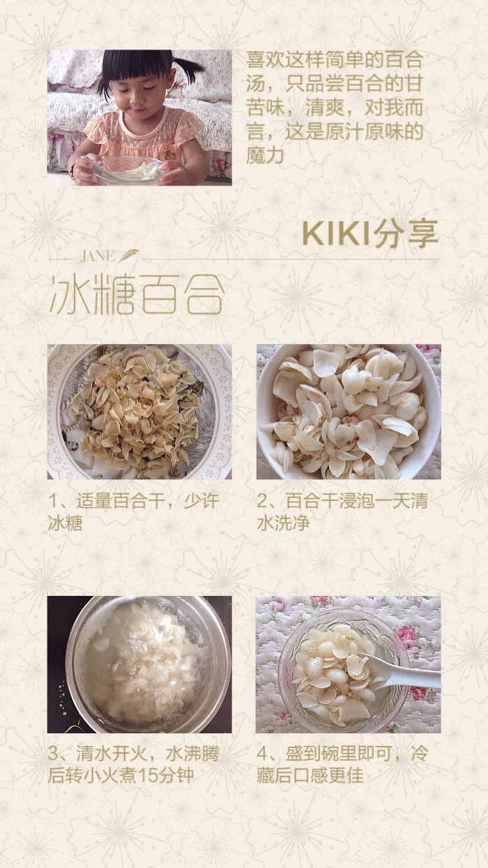 今天KIKI和大家分享两道百合的简单做法,我钟爱百合的甘苦味,喜欢简简单单的来食用,让繇繇从小就接触天然食物,对我而言,这就是原汁原味的魔力!