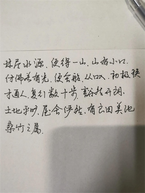 桃花源是大山环抱中的一片开阔地。作者从大山夹缝中一个小小入口进入,视野突然开阔起来,只见肥沃的田野中一幢幢小别墅排列整齐。大片的庄稼田绿油油一片生机盎然,旁边密密匝匝的桑树也长得蓬蓬勃勃,共同宣示着风调雨顺丰衣足食的好年景。不光有稻谷吃有丝绸穿。还发展渔业养殖。养鱼池中绿水如茵,波光粼粼,鱼儿无忧无虑游来游去的悠然自得的样子也像生活在仙境。看着都觉得幸福。