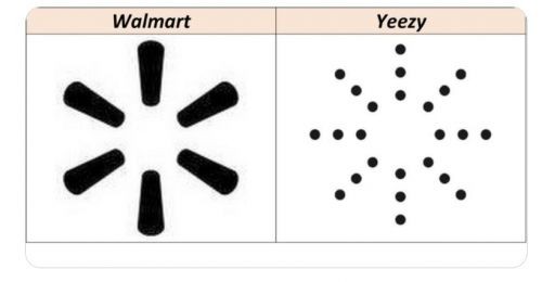 在距离Kanye West公司申请美国专利过去近四个月的时间,沃尔玛终于忍不住发声,并详细例举出关于Yeezy LLC新商标与其品牌标识相似的证据,其在反对文件中称:“沃尔玛已使用标志性六指针射线阳光标识长达13年,且拥有稳定的消费群体,Yeezy LLC使用24个圆点组成的八指针射线是想‘混淆视听’,为消费者带来双方品牌之间‘有关联的错误暗示’。”