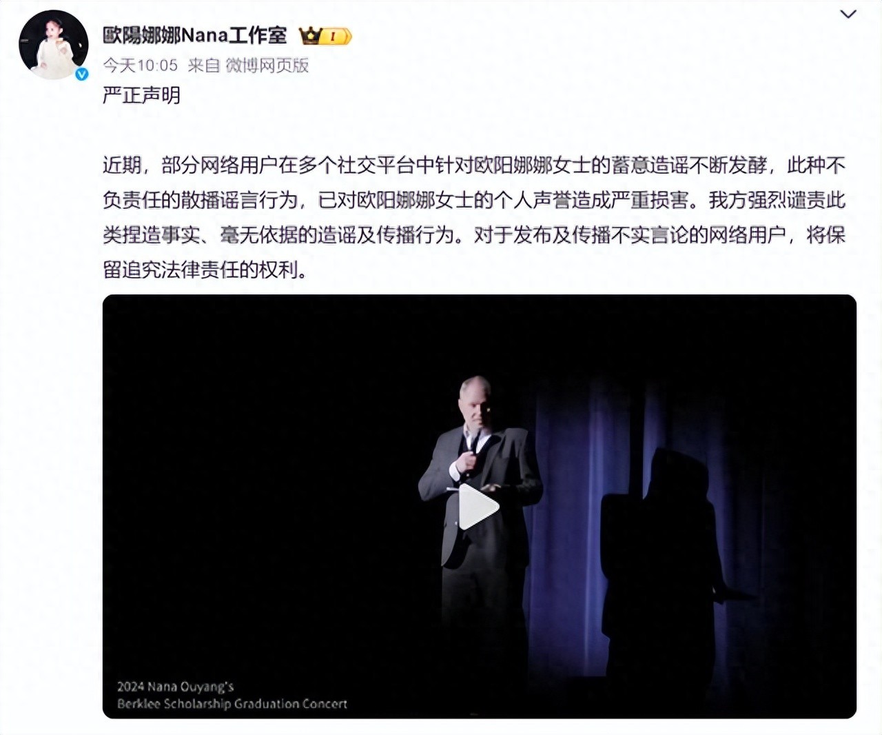 热搜第一!欧阳娜娜工作室发视频严正声明