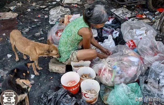 正是因为这些原因,菲律宾首都,“东方小纽约”马尼拉周围才有了居住着400万居民的贫民窟。这些可怜的居民没地儿住,有的就住在公共墓地里,而他们的饮食,其实是别人扔下的垃圾。凌晨,就有很多贫民窟的人跑去餐厅周围的垃圾场守候,把别人吃剩的残渣捡回来再重新回锅,有的自己吃,有的就卖给贫民窟里的穷伙伴,这种东西还有个名字,叫“Pagpag”,意思是“掸去上边的灰尘”。