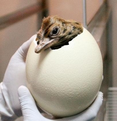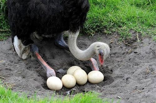 鸵鸟是群居日行性禽类,通常以10-30只为一群生活,而且常与其他草食性动物一起生活。鸵鸟的脚趾只有两个,非常发达,当它受到威胁或者受到惊吓的时候,这一对粗壮的脚能跑出每小时60-70公里的高速,还有,鸵鸟的叫声宏亮而低沉。鸵鸟也是卵生动物,它们交配几天后会每天或者每两天产1枚卵,直到产有10枚左右时。便开始进行孵化。孵化是由雌雄鸵鸟交替进行进行的,40天左右小鸟出壳。
