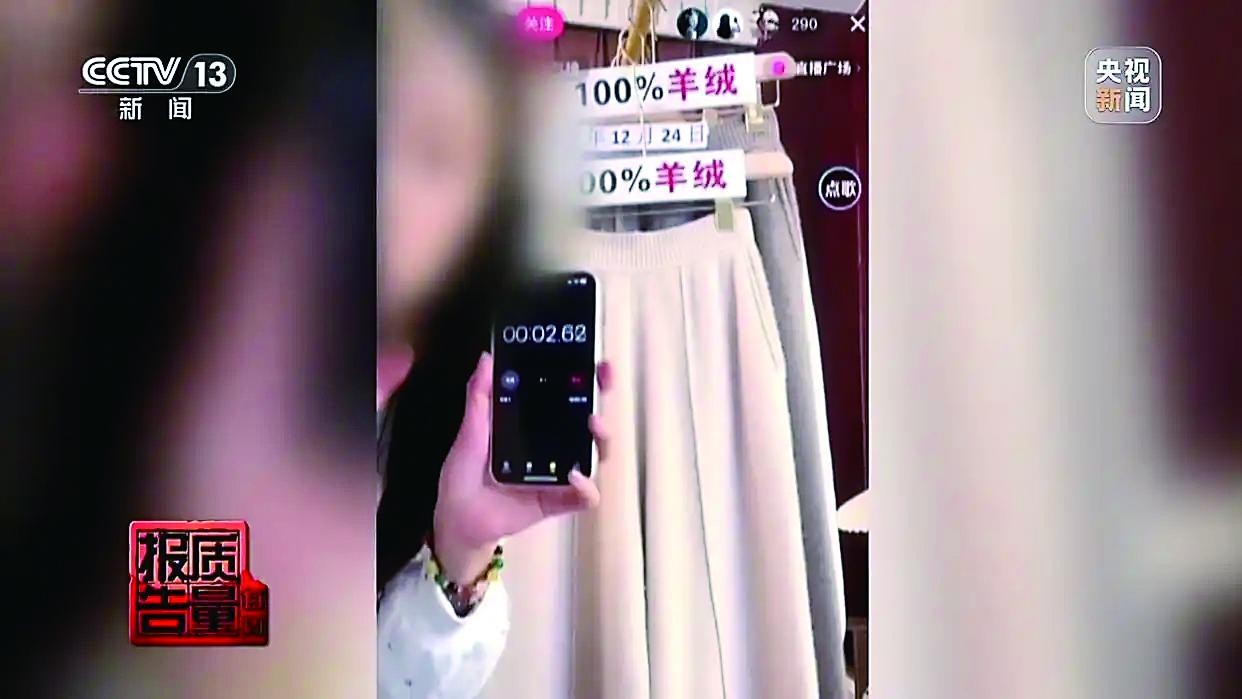 记者调查发现,目前在一些直播平台,一些商家为了增加销量,通过虚假宣传,用普通针织服装冒充100%山羊绒制品对外销售。
