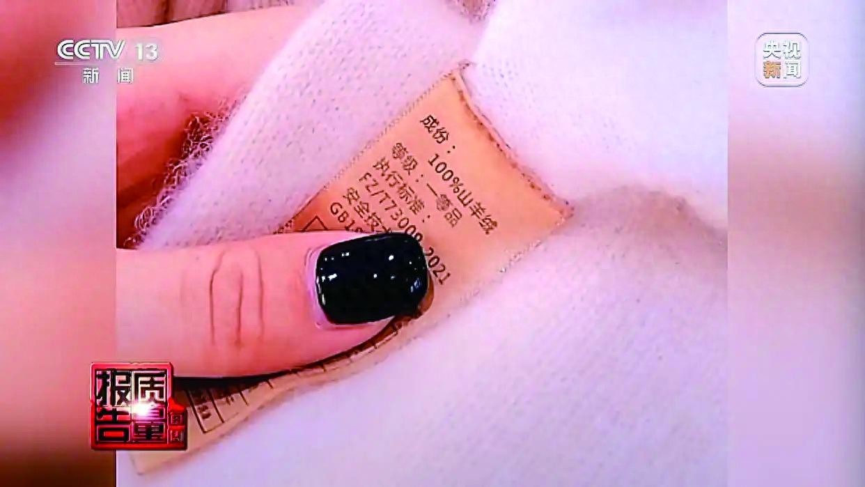 屏幕上打着“100%羊绒”的宣传语