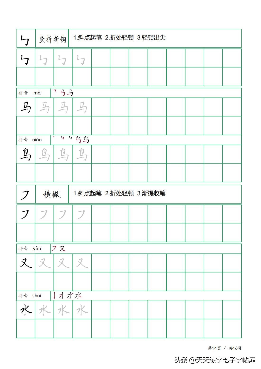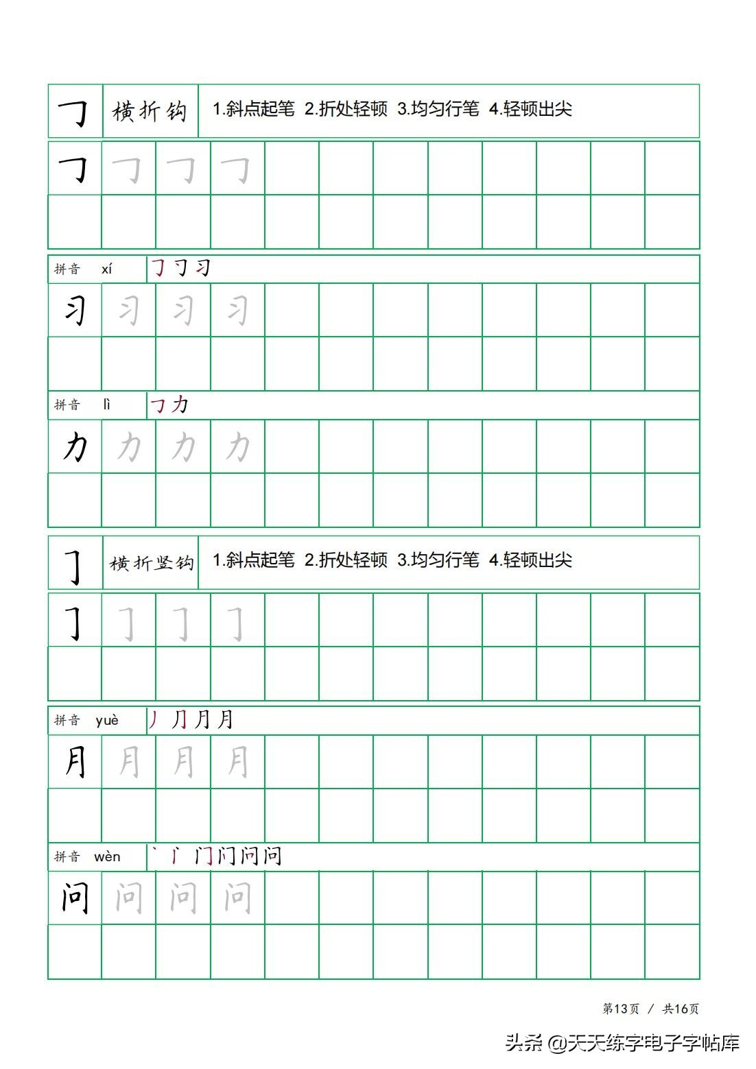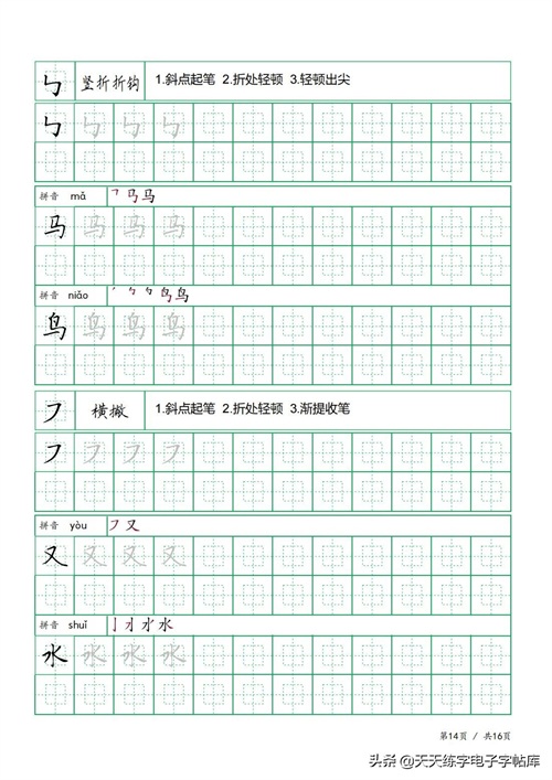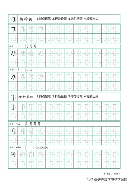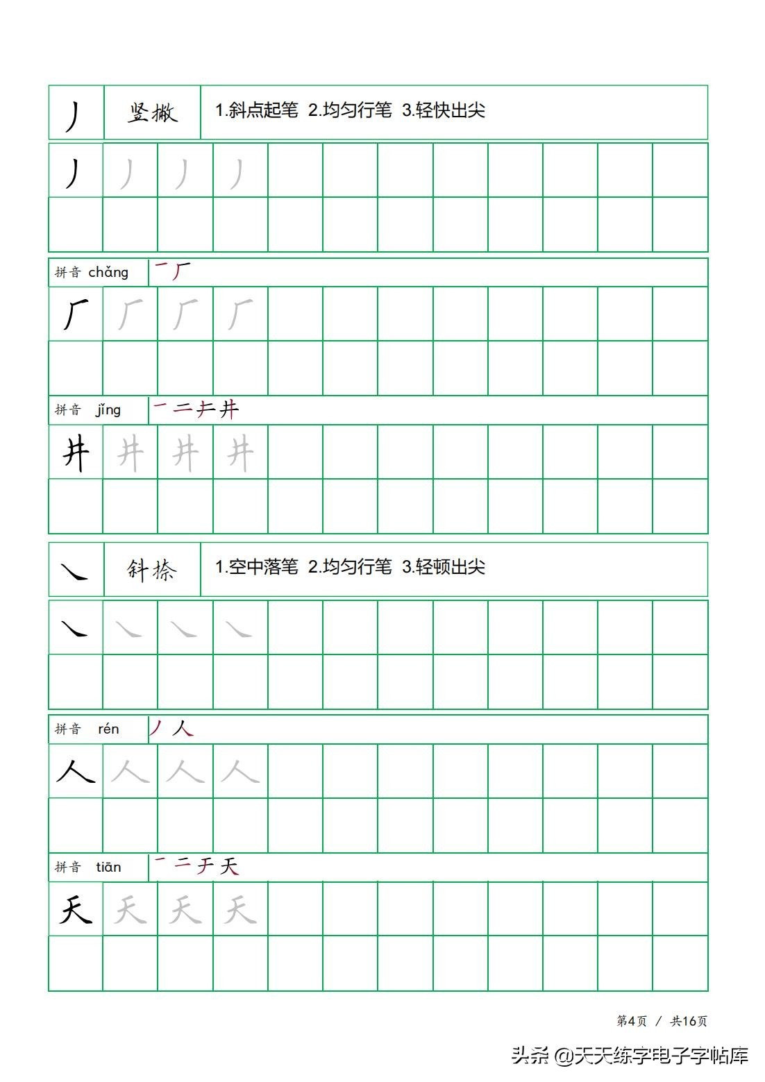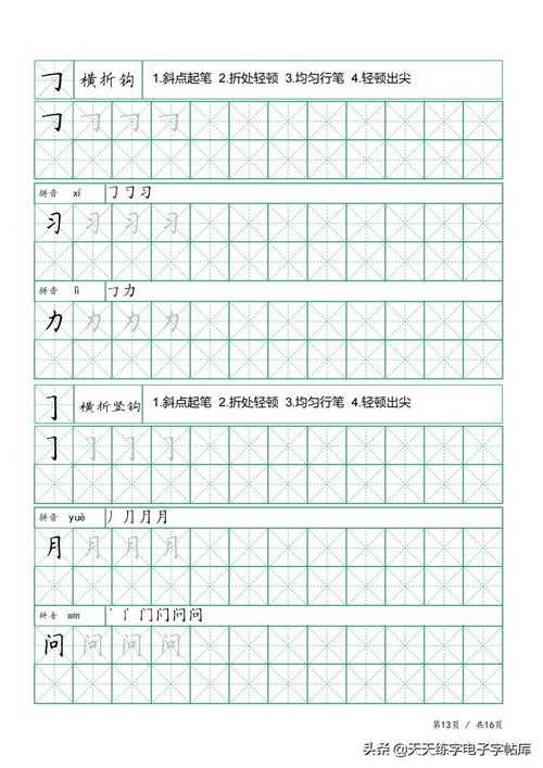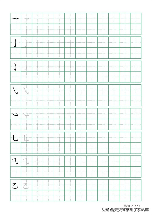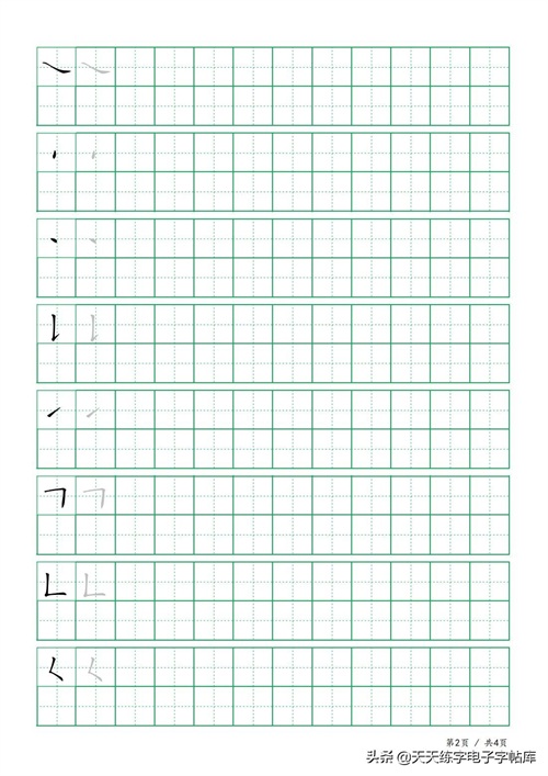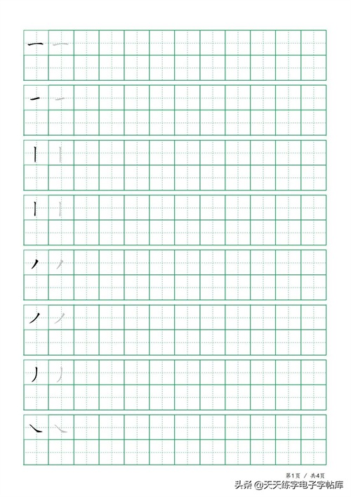 32个基本笔画+例字,田字格回宫格米字格方格可选