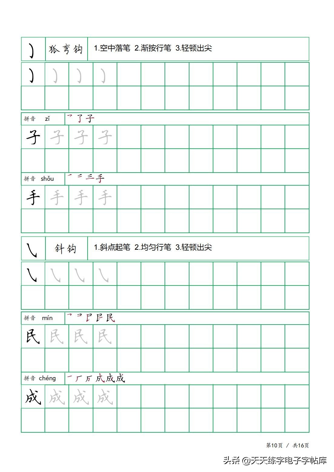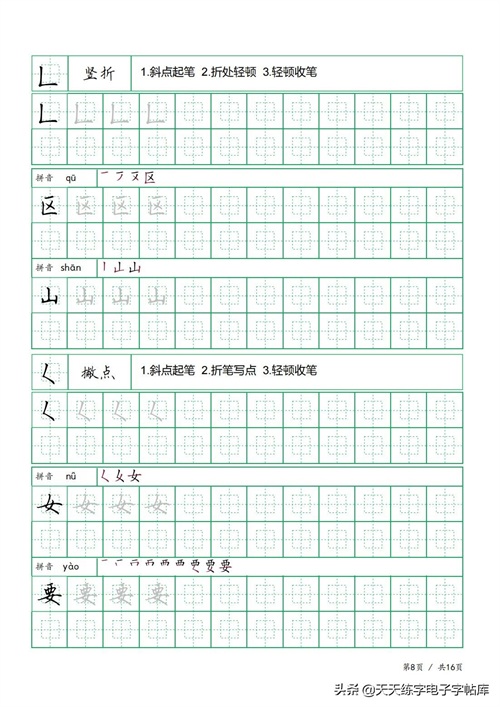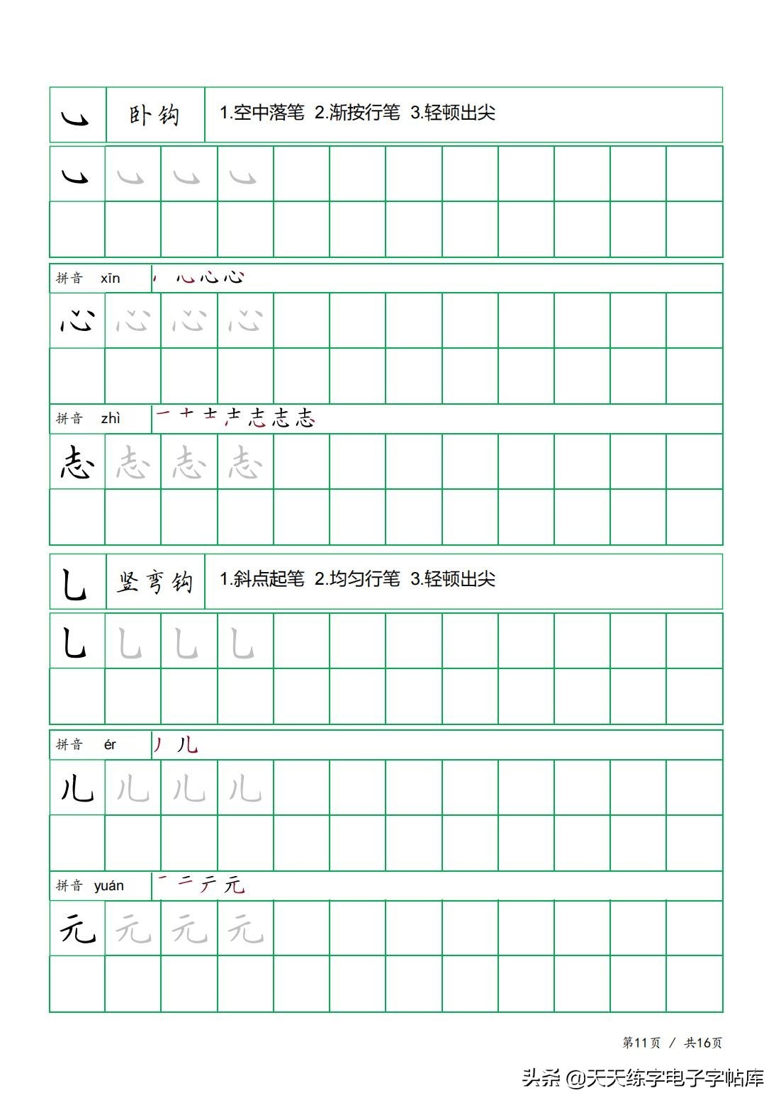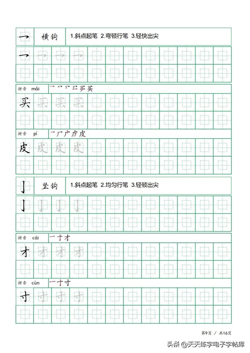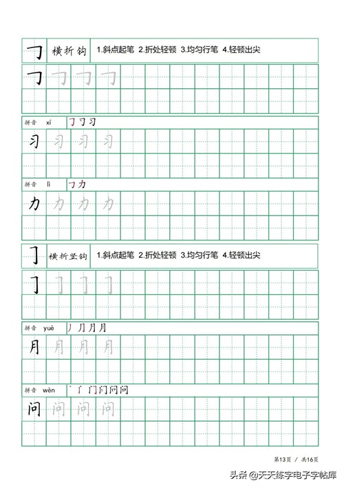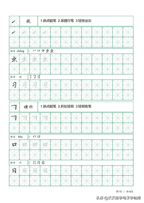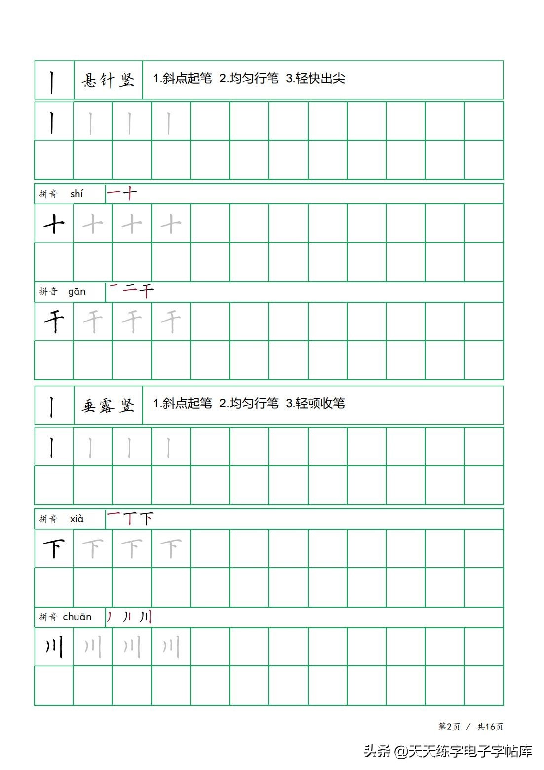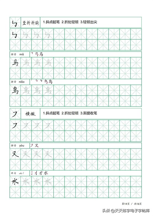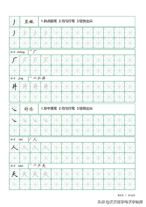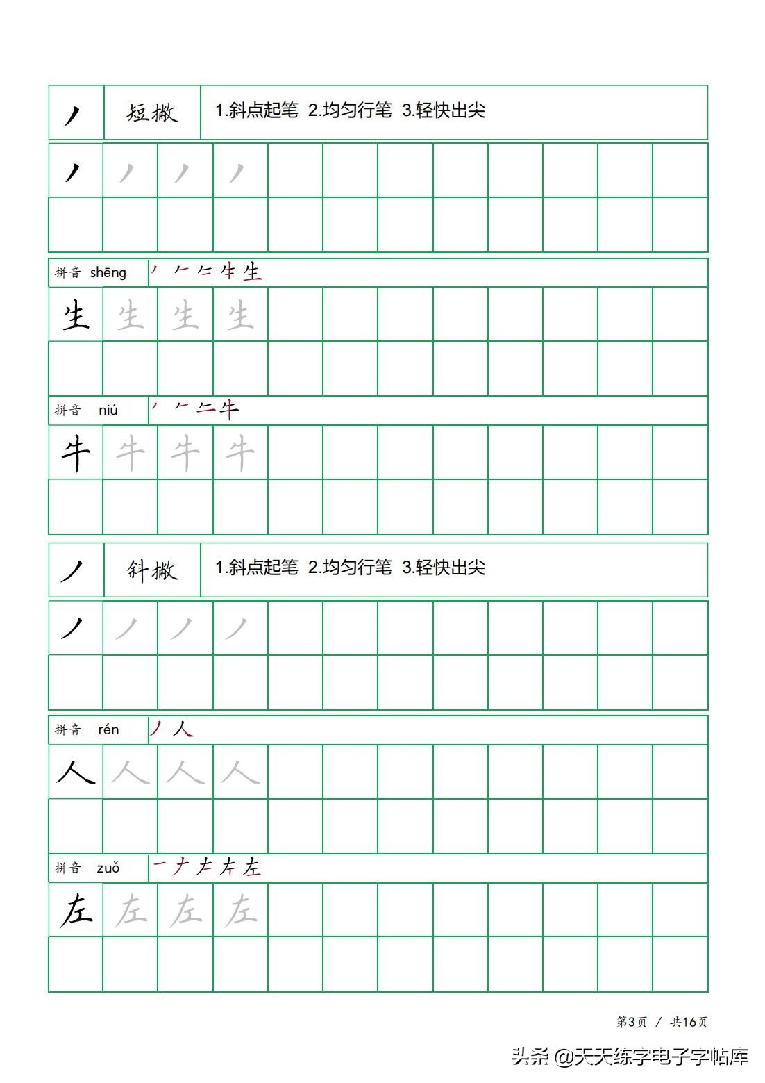 32个基本笔画+例字,田字格回宫格米字格方格可选