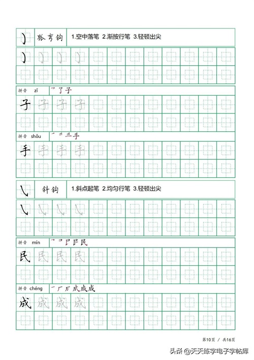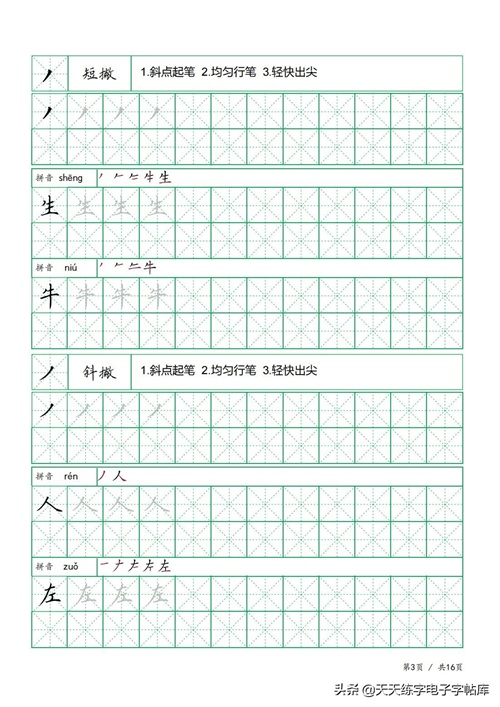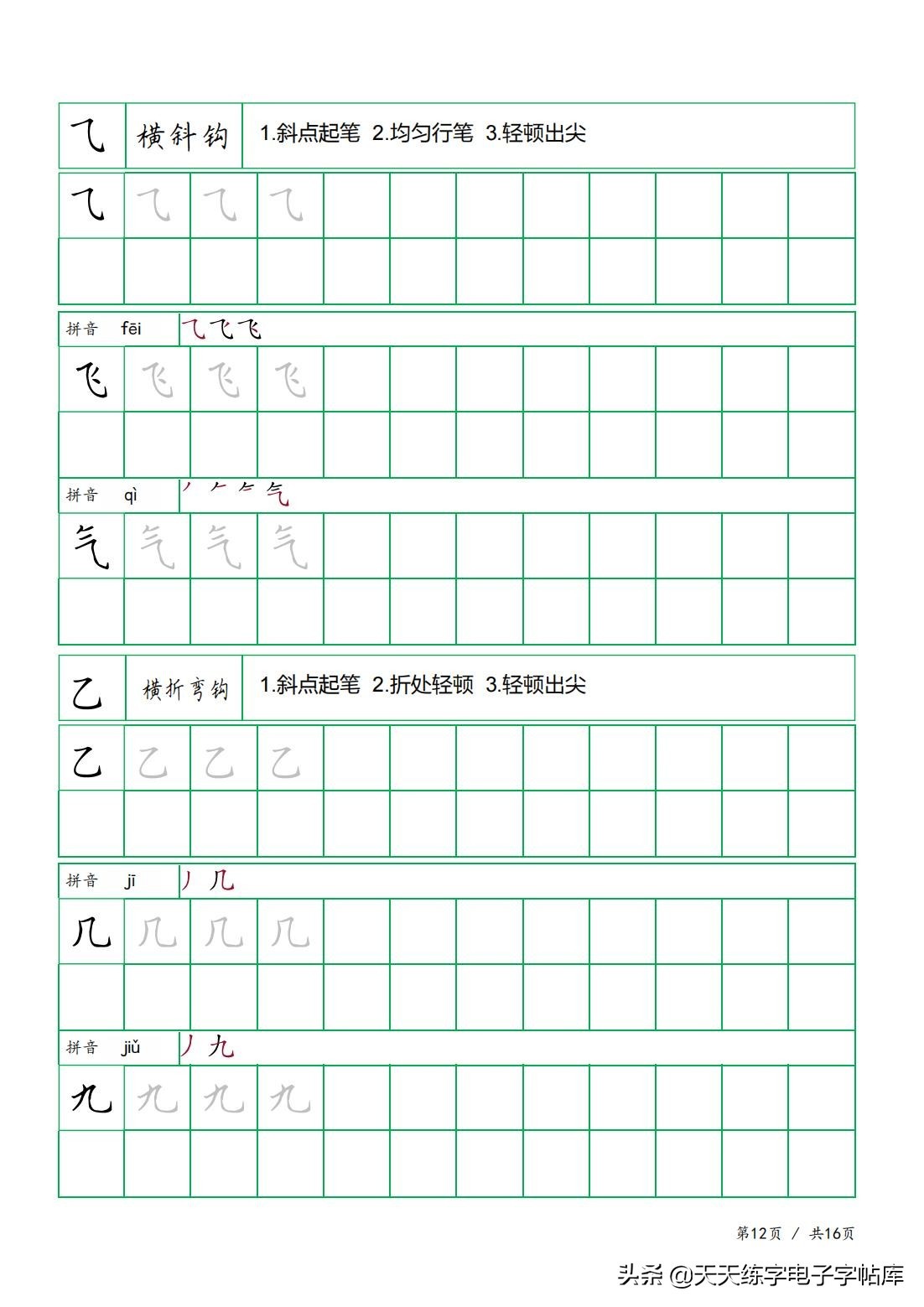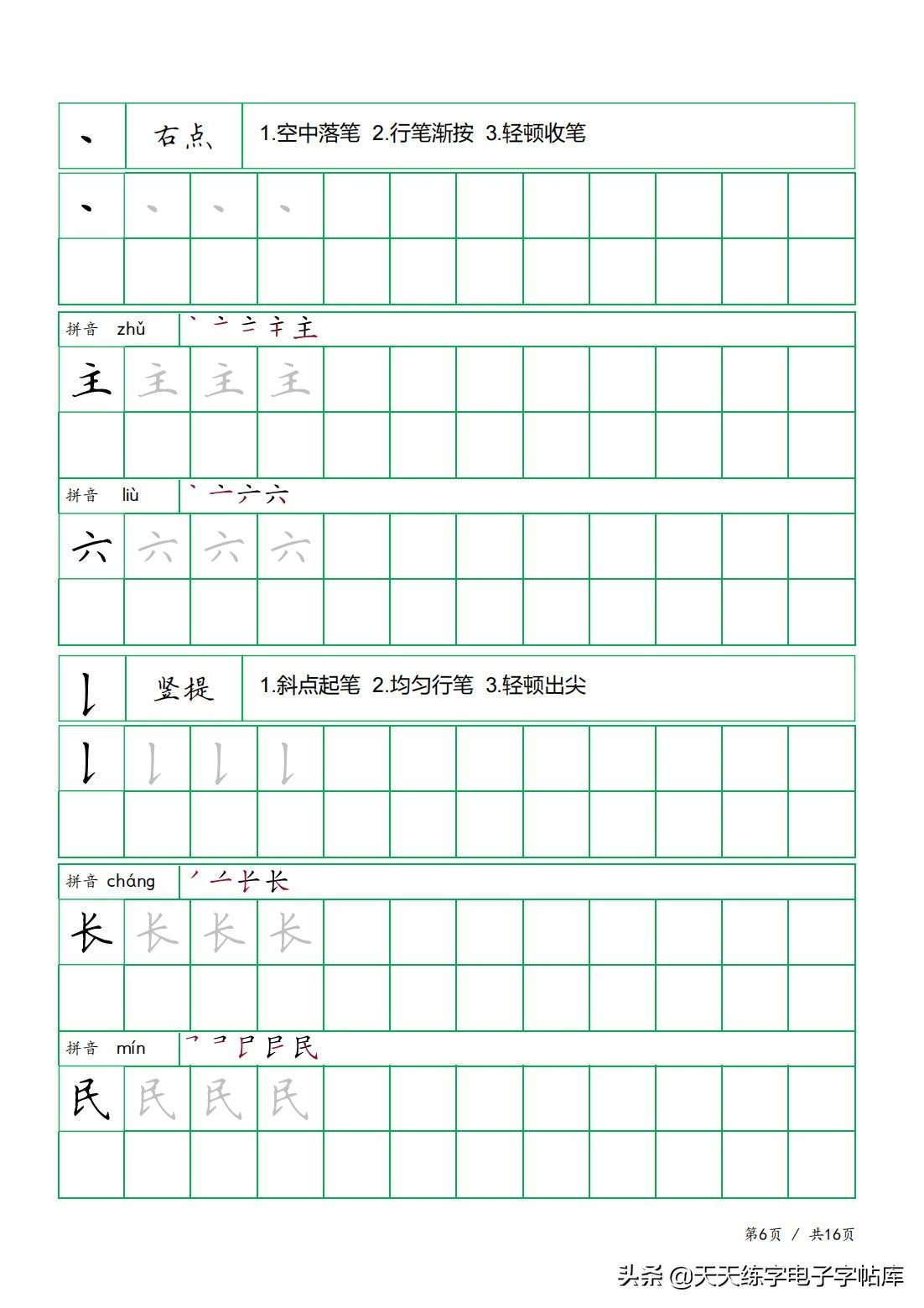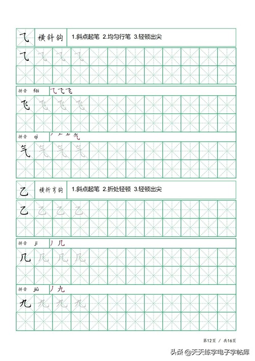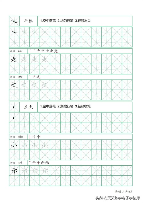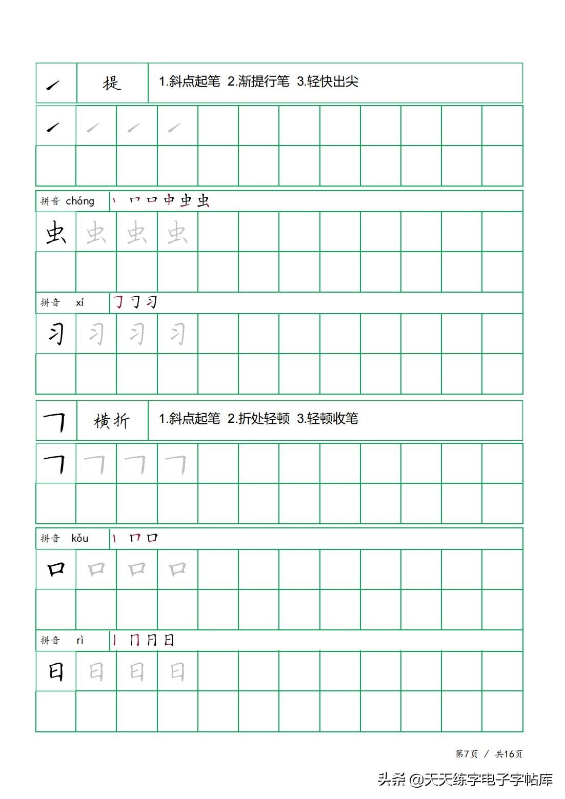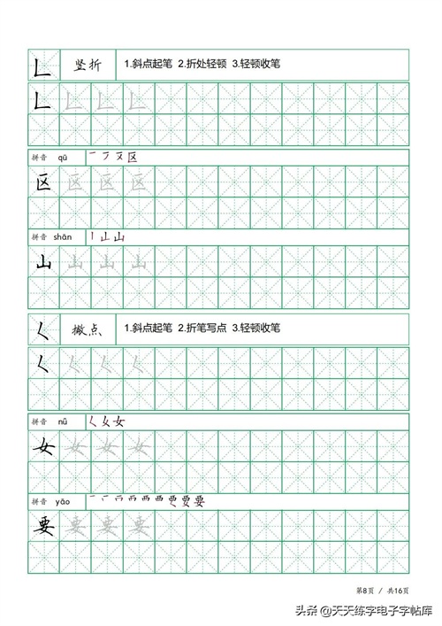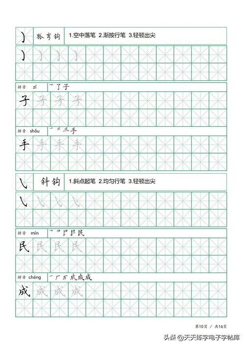 32个基本笔画+例字,田字格回宫格米字格方格可选