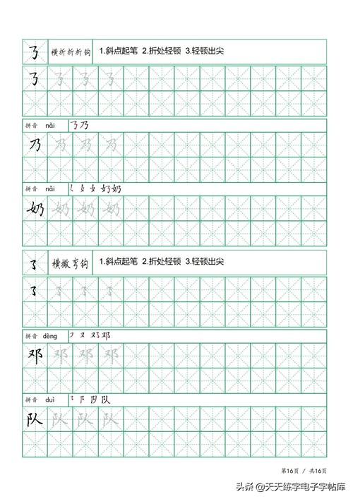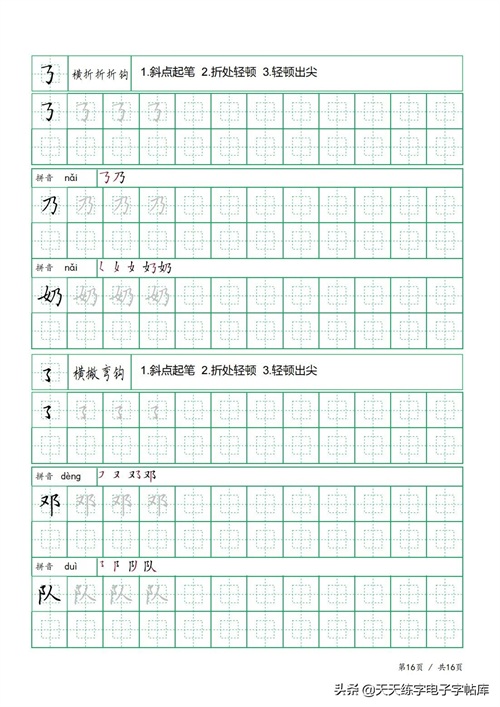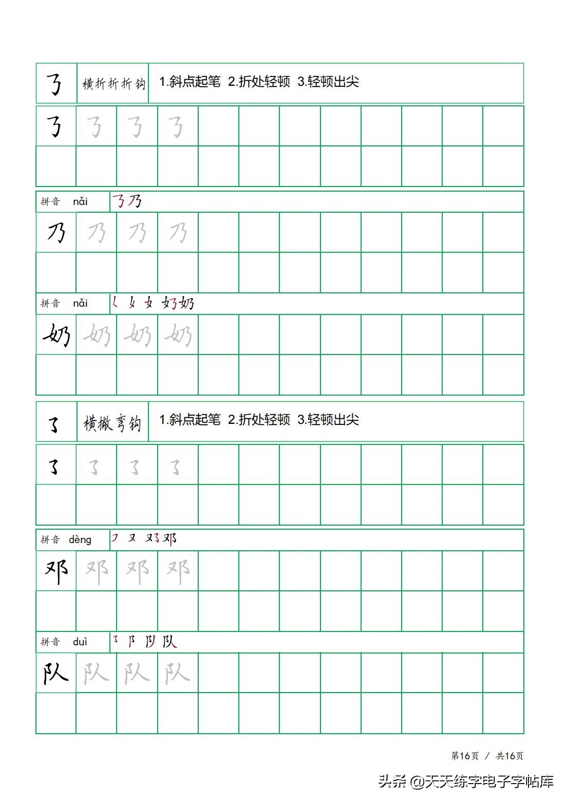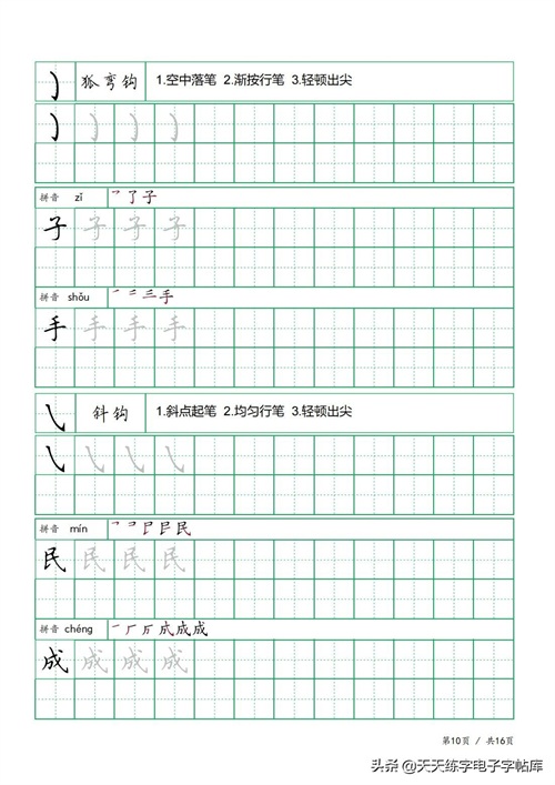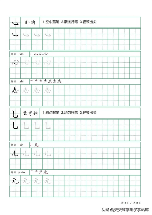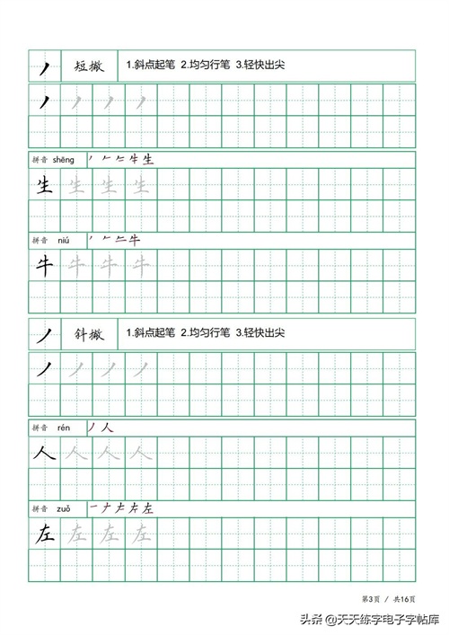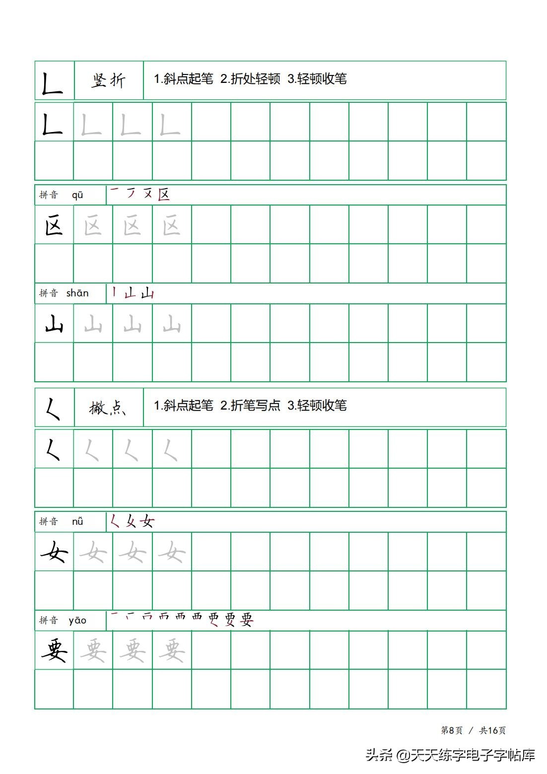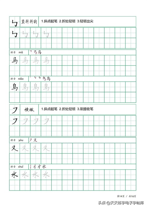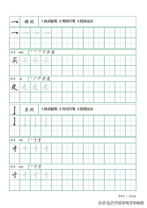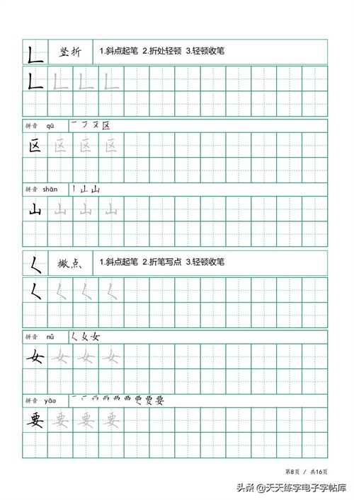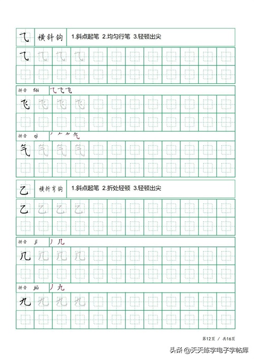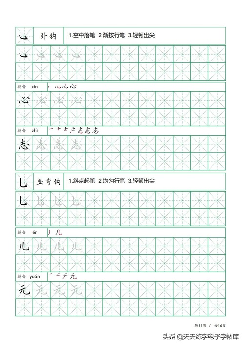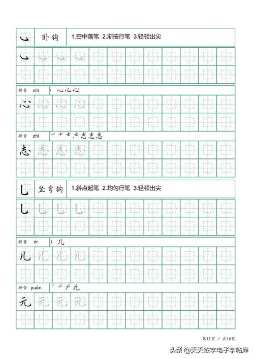 32个基本笔画+例字,田字格回宫格米字格方格可选